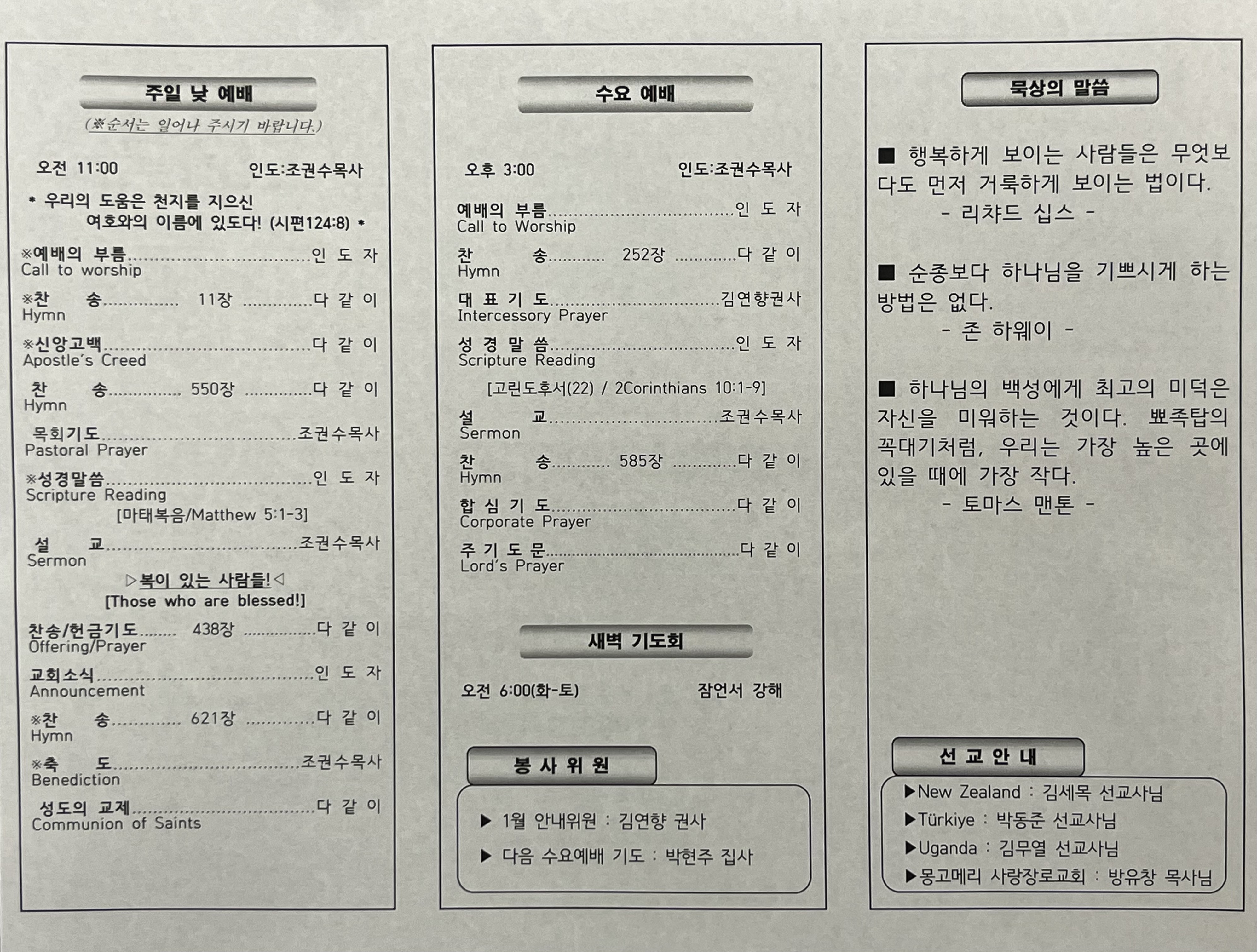 1/11, 교회주보 [사진 & HWP]