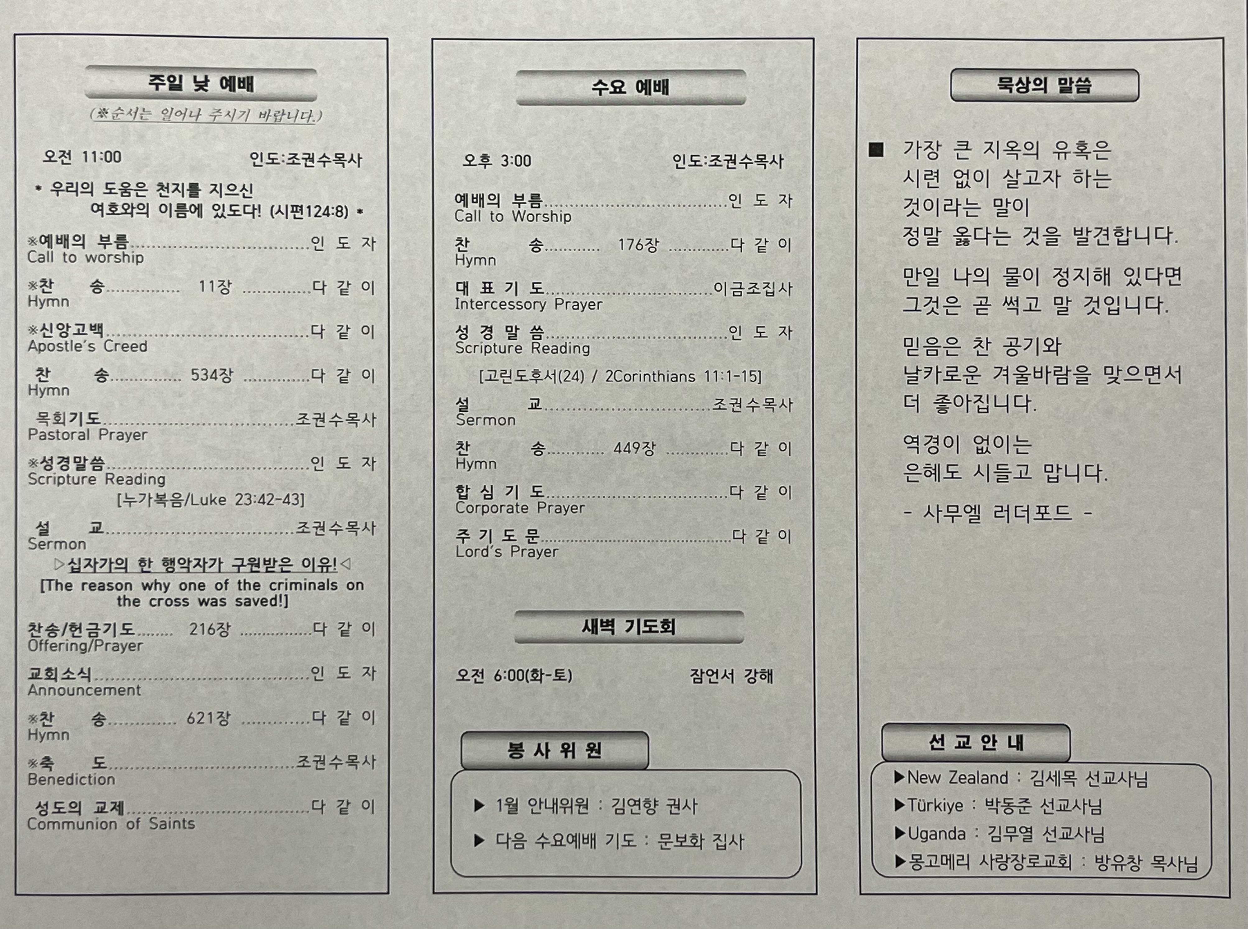 1/11, 교회주보 [사진 & HWP]
