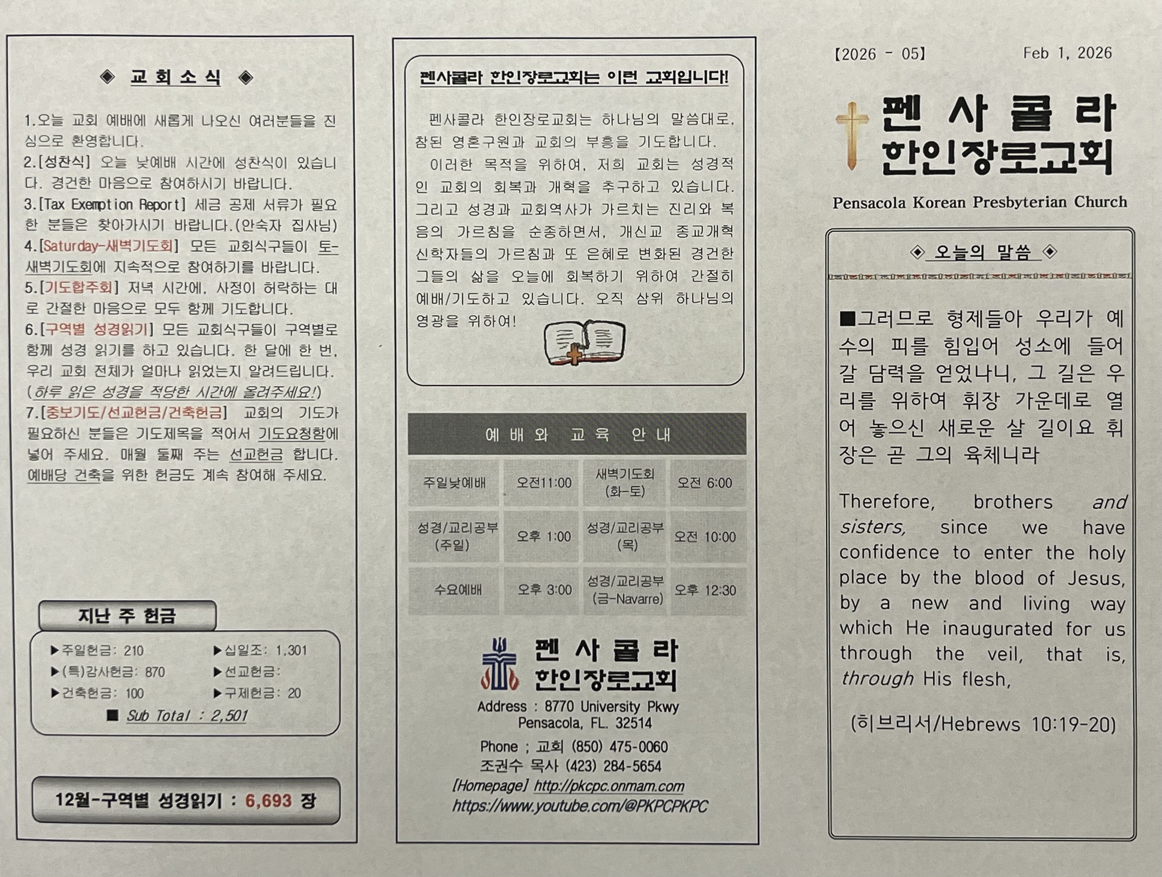 2026년 2월 1일,교회 주보입니다.