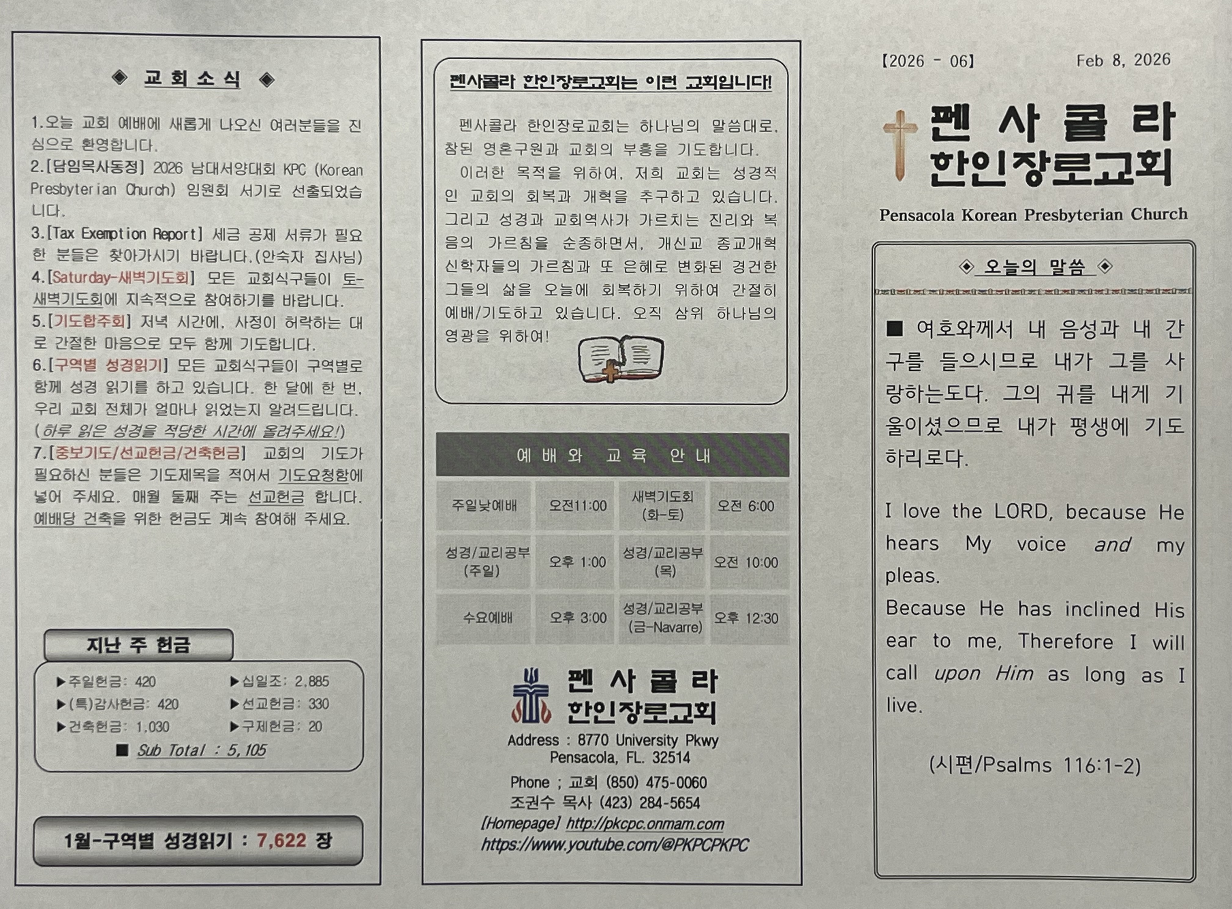2026년 2월 8일, 교회 주보입니다.