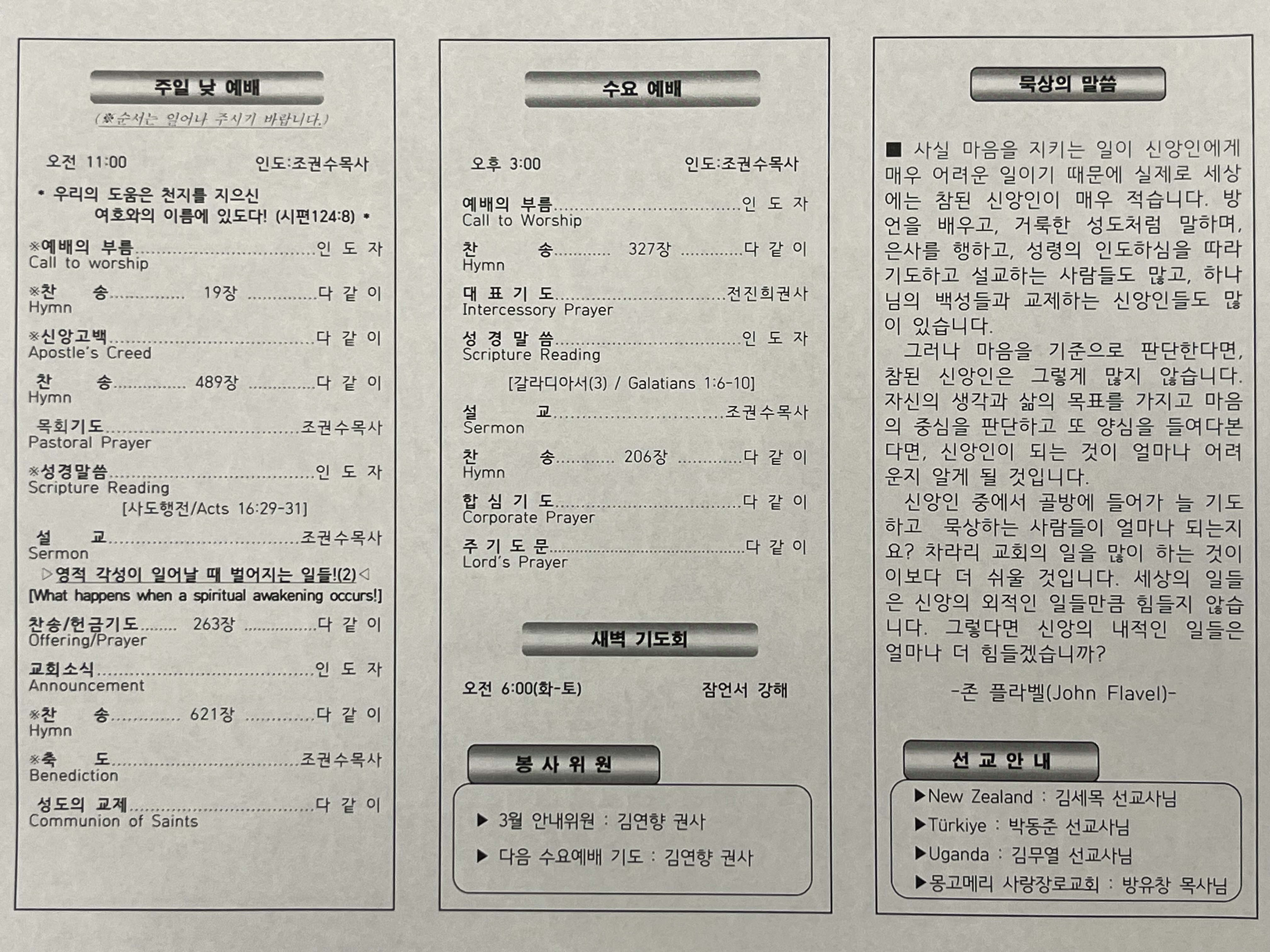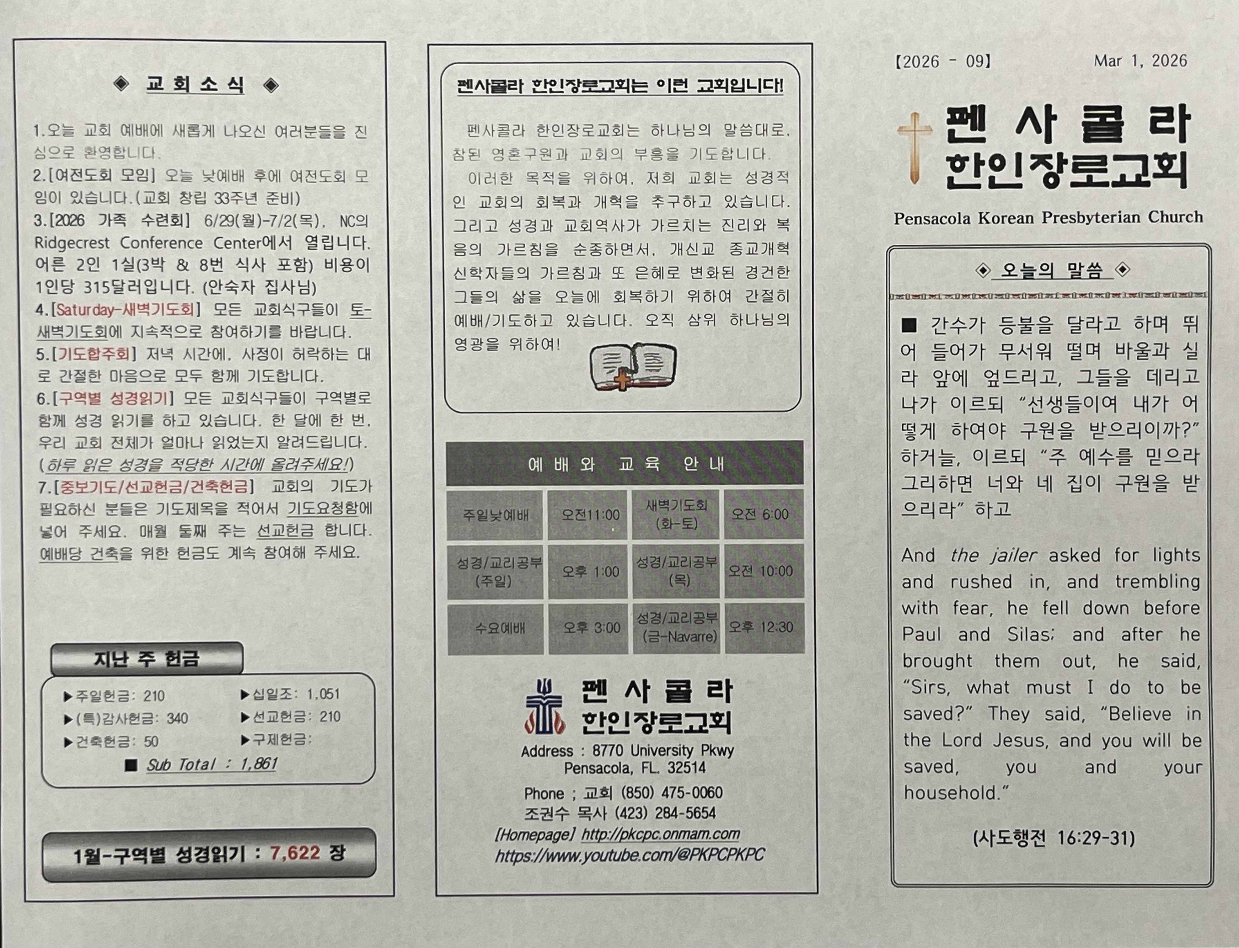 2026년 3월 1일, 교회 주보입니다.
